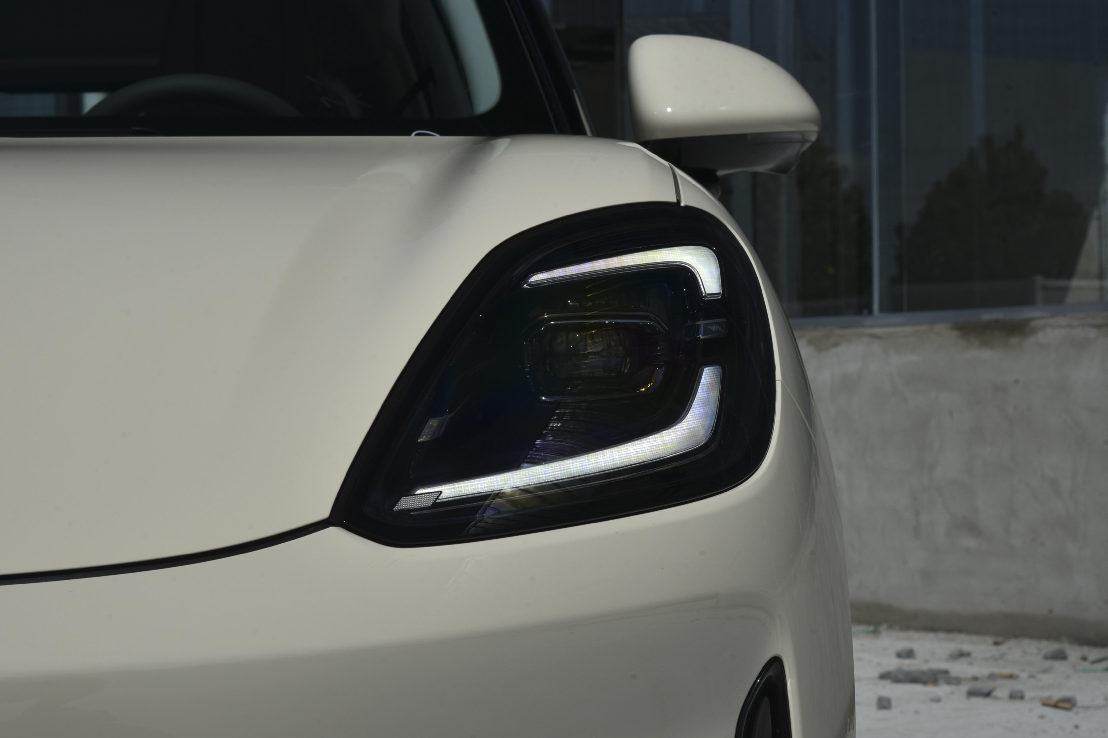 车身比例遵循1:0.618黄金分割原理,视觉重心平衡,姿态修长优雅。飞翼式LED大灯与脉冲星环贯穿式尾灯,进一步提升了车辆的辨识度与科技感,无论是在日间还是夜晚,都展现出强烈的视觉张力。侧面车身紧凑饱满,配常规门把手和16英寸铝合金轮毂,撞色车顶增加时尚感。