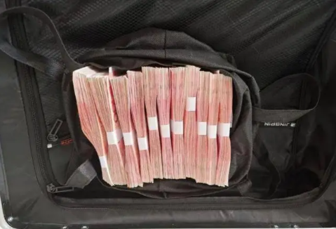 文件袋的拉链没拉严,露出粉红色的钞票边缘。