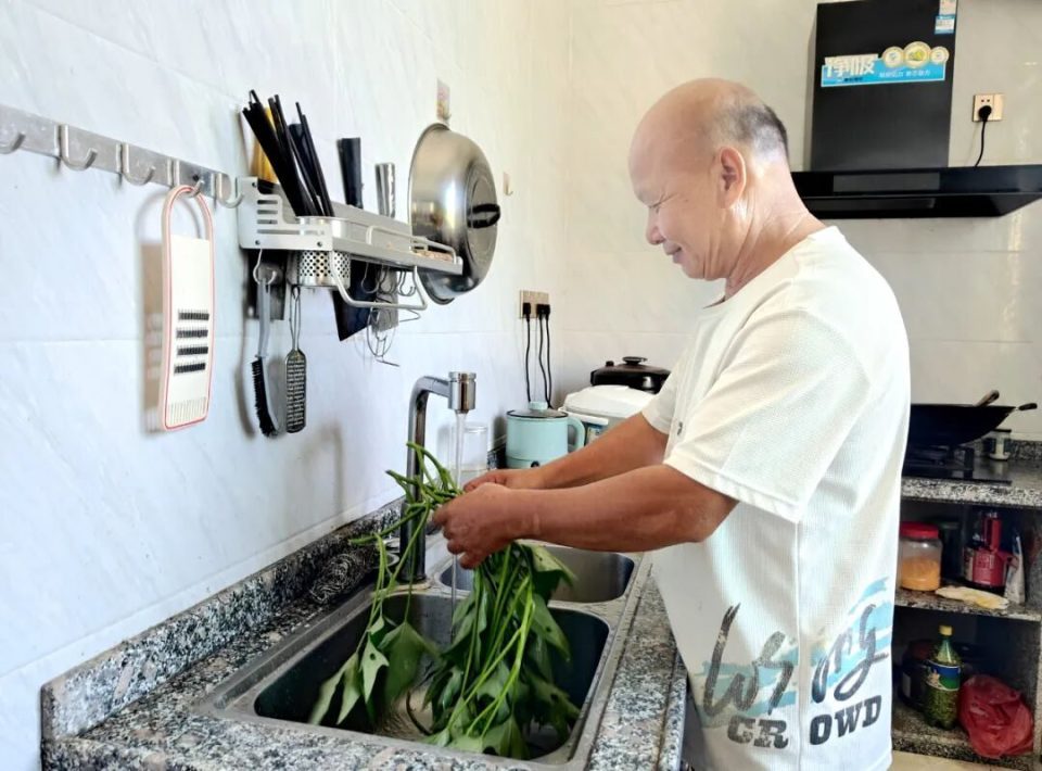 临近中午,村民水叔在家洗菜做饭,清澈的自来水哗哗流出。水叔表示,以前用水高峰期水流量小,水压不稳定,他对改造后的效果十分满意。“现在水清澈,水压也足,不用水泵水都能供上二三楼了。”