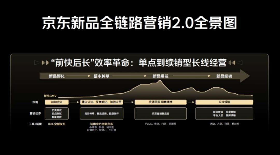 通过全域营销,京东可以帮助新品在全域营销效率更高,速度打爆GMV,不断论证自己的“打新”公式。
