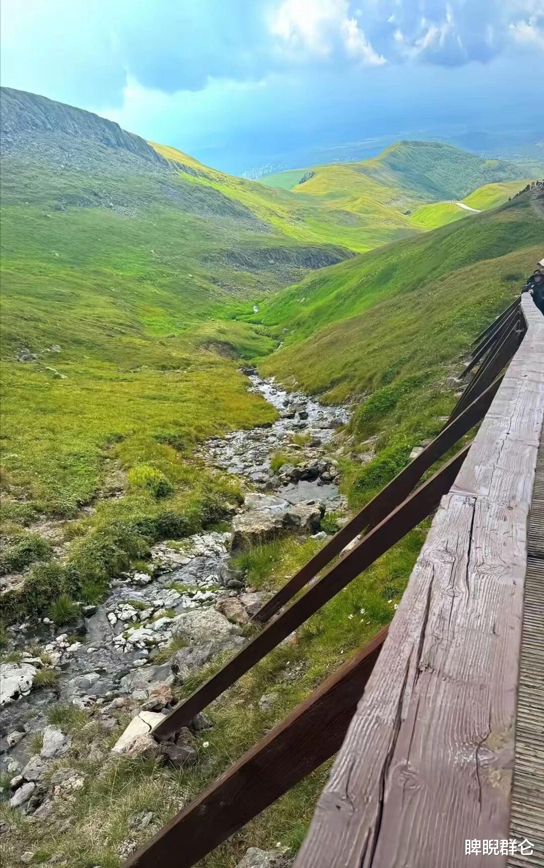 拍照机位:观景台最前方,以天池为背景拍界碑;台阶中途回望,拍山谷全景。