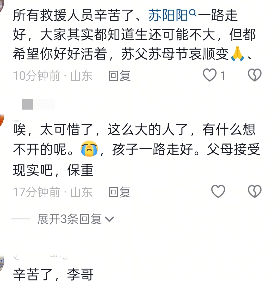 苏阳阳的母亲在得知苏阳阳被找到了,但人没了后,在现场崩溃大哭,哭得撕心裂肺,整座山都能听到她悲戚的哭声。