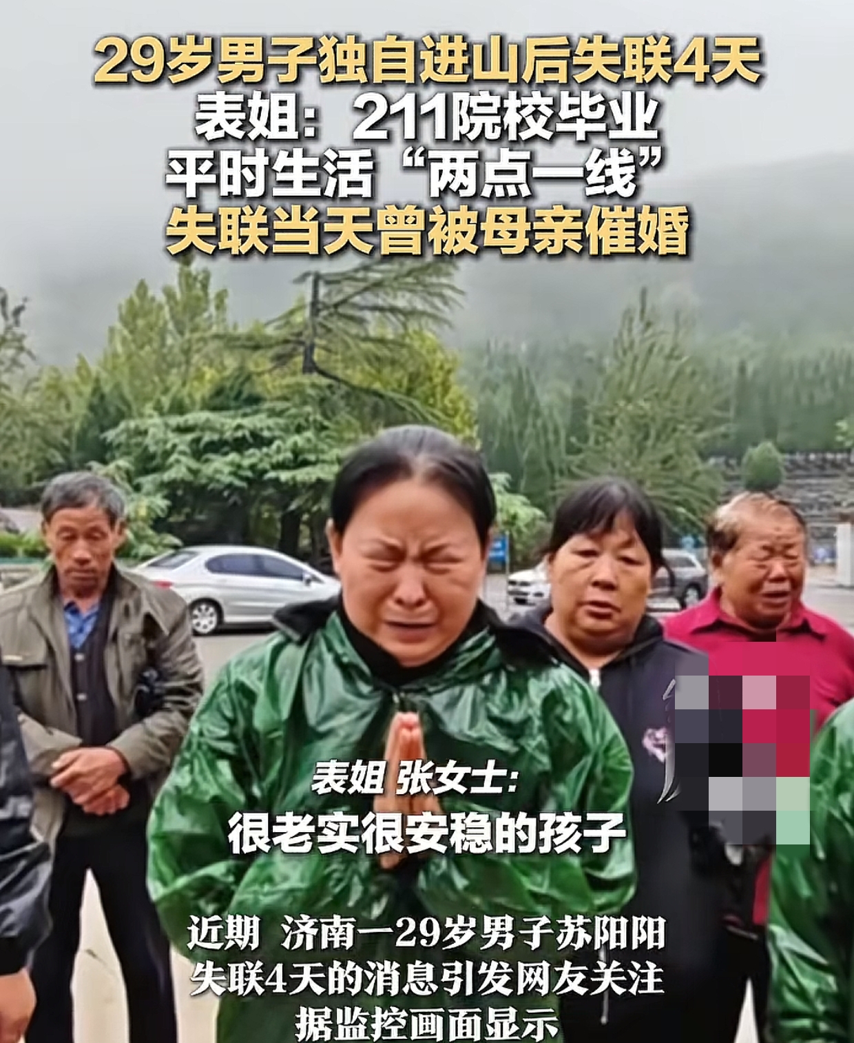 而且苏阳阳的母亲现在应该是非常自责的,因为苏阳阳失联之前曾被她痛骂了一顿,她骂苏阳阳快30岁了还不结婚,骂苏阳阳不修边幅,头发太长,形象不好,找不到对象。