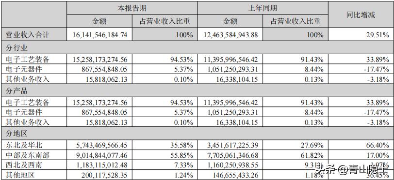 根据北方华创2025年中报,2025年上半年,北方华创的营业收入合计161.4亿元,其中,电子工艺装备收入152.6亿元,占比为94.5%,同比增加33.9%;电子元器件收入8.7亿元,占比为5.4%,同比减少17.5%。
