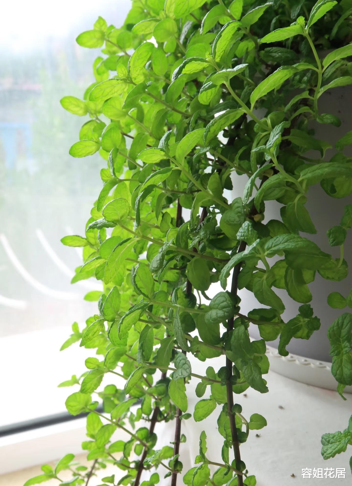 绿薄荷:也叫留兰香薄荷,长的很快,分枝也很多,枝条长的太长时,容易流出花盆变成瀑布。