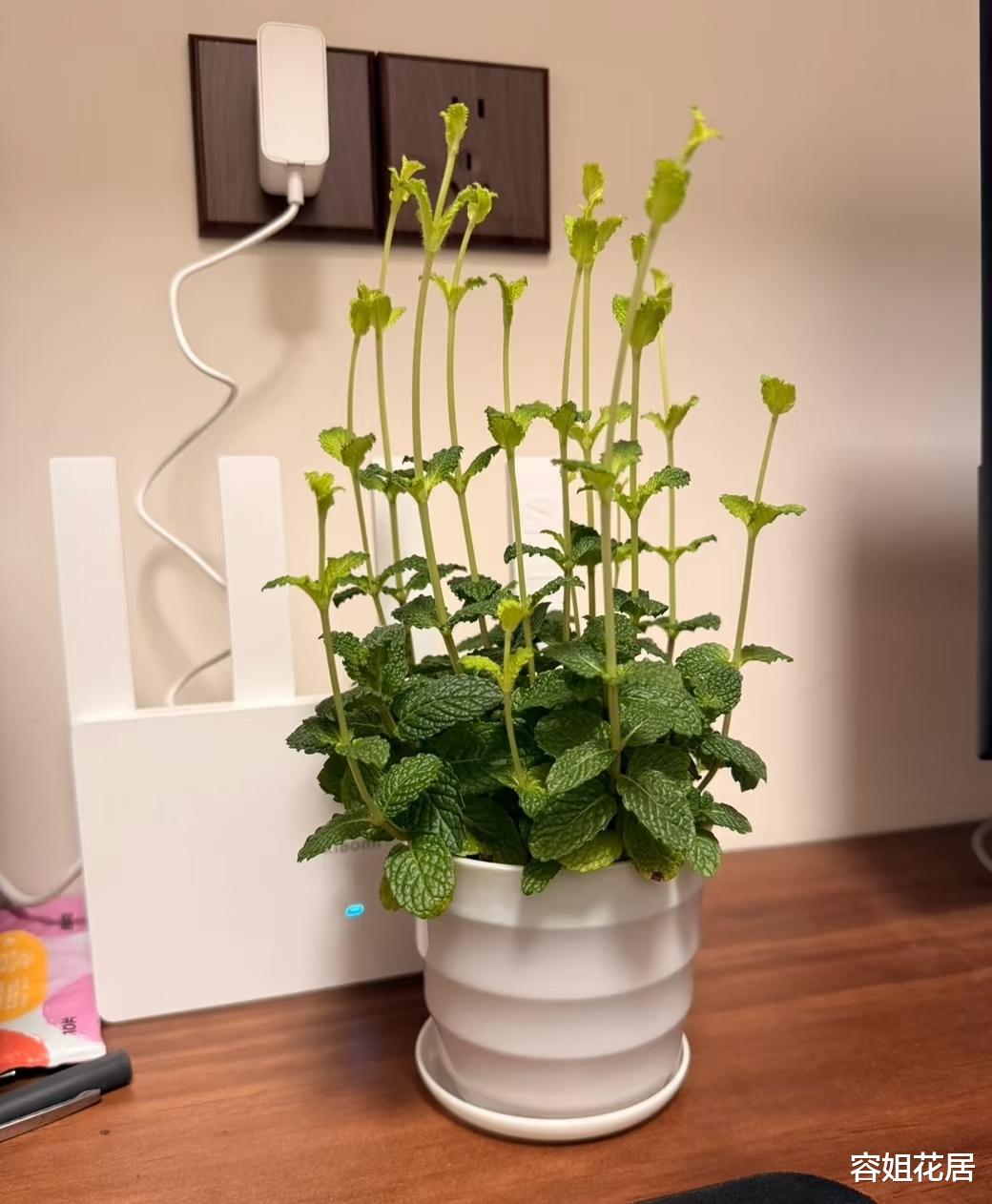 当我们养的薄荷,一旦出现严重缺水,枝叶就容易下垂倒伏,这样也容易长成瀑布,只是叶片比较干瘪,缺少生机。