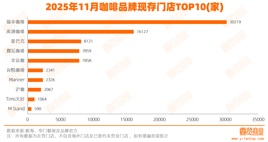 11月,壹览商业长期跟踪的20家连锁咖啡品牌共新开2979家门店,同比增长75.64%;总门店突破8.1万家,共计81217家,环比净增2566家,整体规模持续扩大。