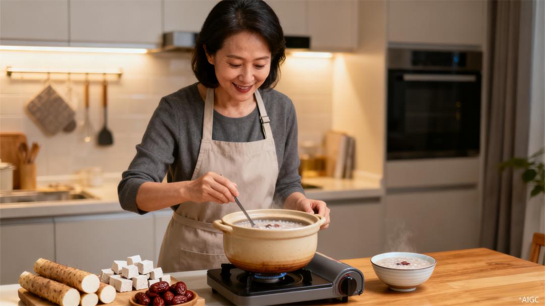 “我常年加班,脾胃特别差,吃点凉的就拉肚子,之前喝了不少养胃粥也没效果。听吴老师的课才知道,我是脾胃虚寒,得用温性甘味的食材 —— 课程里说山药是温性甘味、归脾经的,茯苓也是健脾的,我现在每天早上煮山药茯苓粥,加两颗甘味的红枣补气血,喝了一个月,胃不胀了,吃凉的也不拉肚子了。我还把这个方子教给我妈,她也是脾胃弱,现在母女俩一起调!”—— 学员刘女士(42岁,上班族)