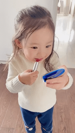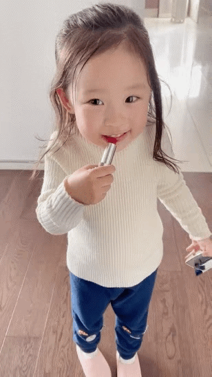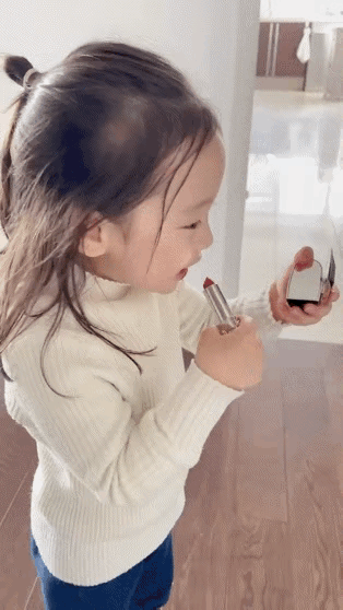 王智5岁的女儿用妈妈口红! 王智5岁的女儿一手拿着小镜子,一手拿口红往嘴上涂,看这动作是不是还像模像样的!小姑娘真的很可爱,原来全世界的小孩都一样,都对妈妈的化妆品都有一种天然的好奇心! 小姑娘真的好可爱,完美遗传了妈妈的好基因! 看来长大又是个美人!