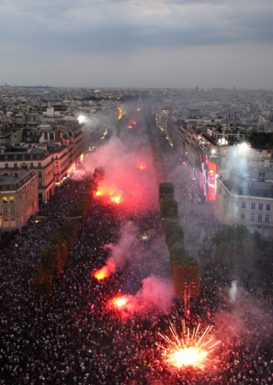 整个巴黎已经火光冲天,燃烧的垃圾桶和汽车堵死了道路,警察只能靠催泪瓦斯死守。