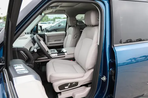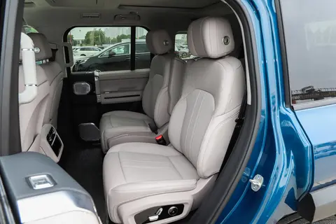 中控台上那块35.4英寸的“天际屏”特别打眼,官方这么叫,实际用起来就是把仪表盘和副驾娱乐屏连在了一起。显示的信息很全,车速、导航路线不用说,就连越野时需要的海拔、坡度数据都能清晰显示,字体大小也合适,不用眯着眼看。旁边还有块15.6英寸的悬浮中控屏,操作逻辑跟智能手机差不多,点几下就能找到空调、导航这些常用功能,上手没难度。