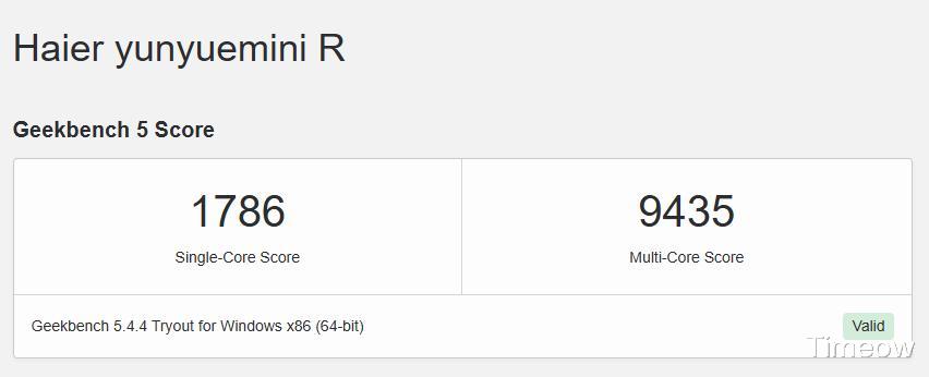 Geekbecnh 5跑分项目上,海尔云悦mini R拿到了多核9435,单核1786的成绩。多核比i5-12450H处理器的迷你主机高出一些,单核性能则少一些。