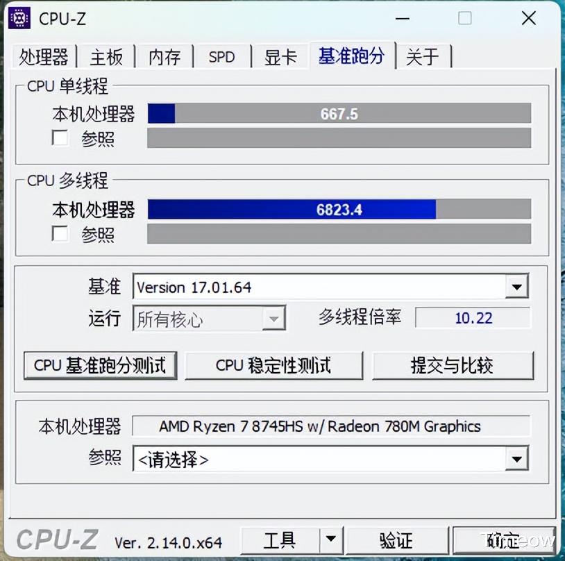 单核性能接近台式机14600K的4/5了。多核性能也约为其2/3。
