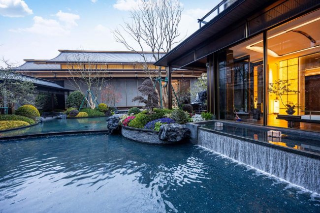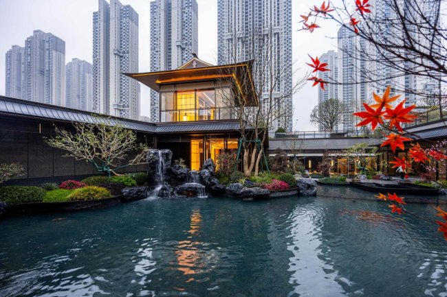 作为主打宋韵美学的国企楼盘,长和宋的园林设计从岳麓八景汲取灵感,摒弃简单的景观堆砌,打造出 “可赏、可游、可居” 的宋式生活场。亭台流水错落分布,花木绿植四季更迭,春日繁花似锦,夏日浓荫蔽日,秋日层林尽染,冬日疏影横斜,下楼即是游园之乐,散步、遛娃、闲坐,每一刻都被自然绿意包裹。更难得的是,园林与浏阳河一线河景相连,过个马路就是约 2000 米浏阳河风光带,推窗即揽河风拂面、碧波粼粼,宋园的雅致与河景的开阔相映成趣,让归家的每一步都充满治愈感。