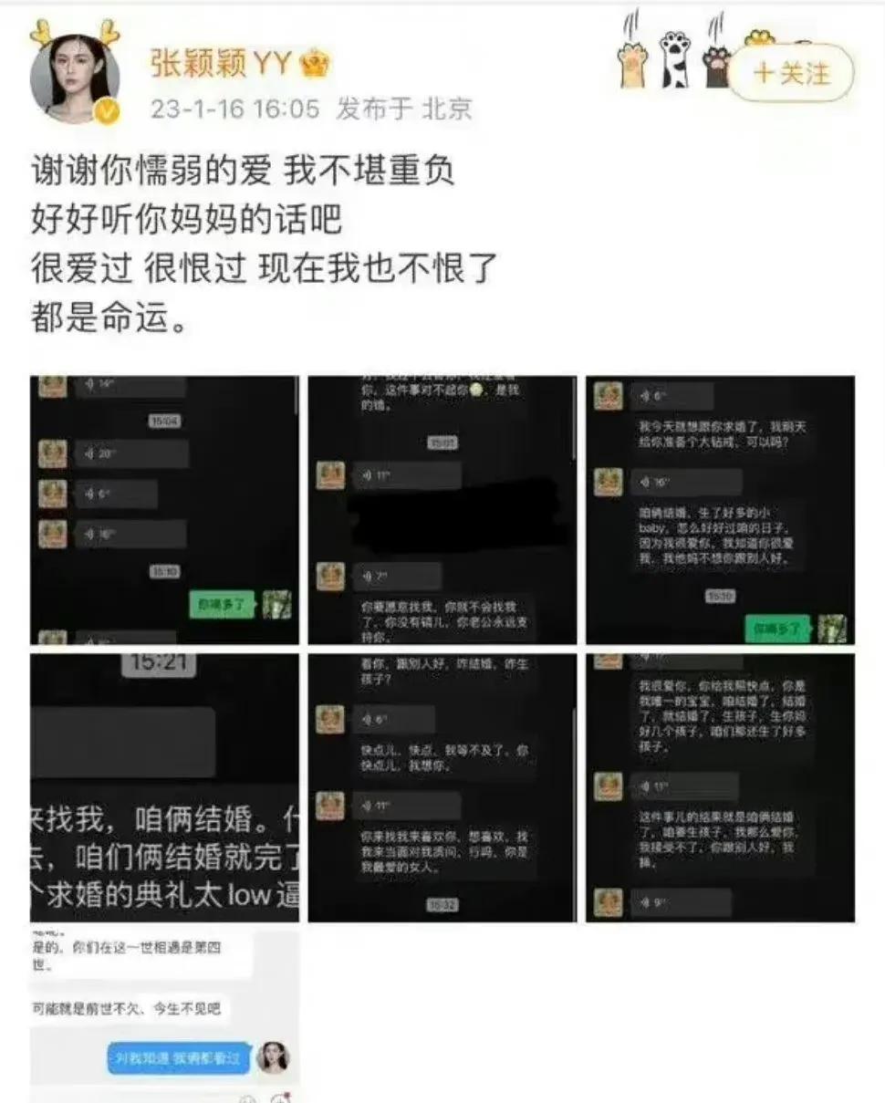 汪小菲是“缠人精”张颖颖秒删聊天记录! 张兰和张颖颖的戏真是越来越精彩了! 张颖颖发文:“谢谢你懦弱的爱,我不堪重负,好好听你妈妈的话吧,很爱过,很恨过,现在我也不恨了,都是命运!”随即删除! 张颖颖还发了很多她和汪小菲的聊天记录,大致内容:汪小菲很爱她想跟她结婚生子! 不想她跟别人好,认定她是最爱的女人! 汪小菲自己的事,跟张兰没关系! 张颖颖还给汪小菲起了个备注名“缠人精”! 话说张颖颖这是在暗示张兰,是你儿子缠着我离不开我! 之前张颖颖半夜直播间痛哭,张兰直接评论张颖颖是心机女! 然后张颖颖怒怼张兰“别在逼我了,为了流量炒作…” 张颖颖发文宣布和汪小菲分手,晒出聊天记录,随后秒删! 汪小菲则直接去老妈张兰直播间替女友出气“别立人设了”! 话说之前跟大S撕逼大战老妈张兰跟着忙前忙后,好不容易告一段落现在又来个张颖颖! 小三上位老妈不同意,汪小菲故意跟老妈对着干! 天天给张颖颖发情话,对自己老妈联系方式都不留,看看这儿子养的真让人心累!