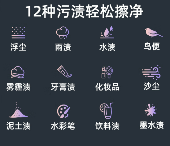清洁细节设计巧思十足:搭配“橘瓣”形铲状高密纤维抹布,搭配玻璃水使用时,既能温柔呵护玻璃表面不刮花,又能强力吸附并瓦解污渍与灰尘;创新双盘清洁吸盘结构,通过反复旋转、循环交替的擦拭逻辑,实现均匀吸擦,擦后玻璃洁净明亮无残留、无水痕。