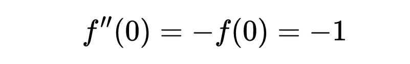 这次两次使用了f’’(t)等于-f(t)的事实。在0处评估得出: