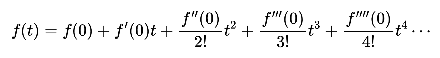 这是什么意思?它告诉我们手推车的运动被描述为时间的多项式函数,其中每个系数可以通过对某个函数f在时间t=0这一特定点的评估来确定。具体来说,这通常涉及到计算函数f在t=0时的值、导数、二阶导数、三阶导数等等。