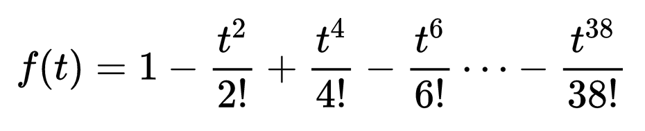 请注意这是一个有限的级数,它不包含超过t的8次方的项。这是这个函数的图形: