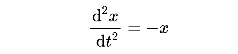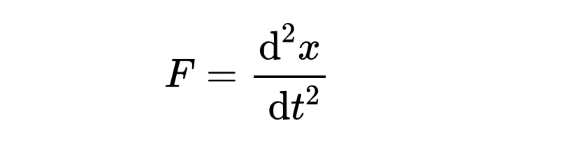 我们可以用x表示加速度。我们知道速度是x变化的速率,加速度是速度变化的速率。这意味着加速度是x变化速率的变化速率。这可以写成x的二阶导数(x的两次微分):