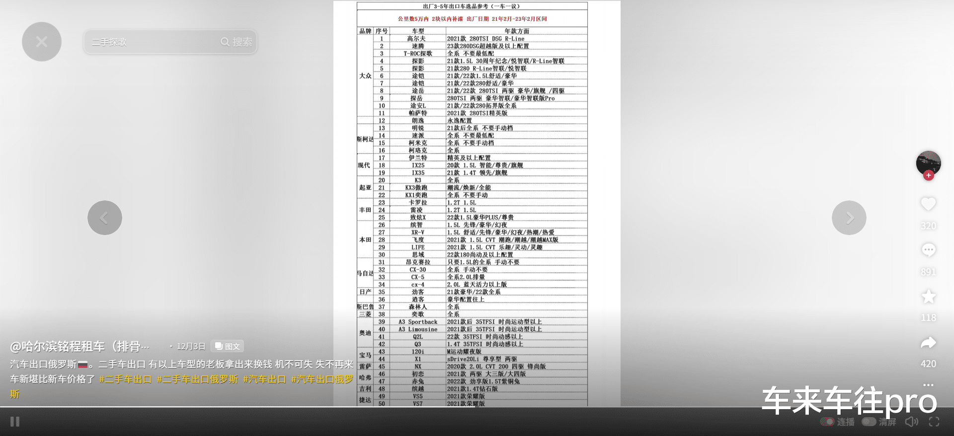 因为被制裁,当地的德系、日系、韩系汽车品牌店铺都已关门,加上当地的俄罗斯政策变化,和环境选择,俄罗斯只能选择从其他地方进口准新二手车。再加上俄罗斯的气温环境,油车仍然是第一选择。