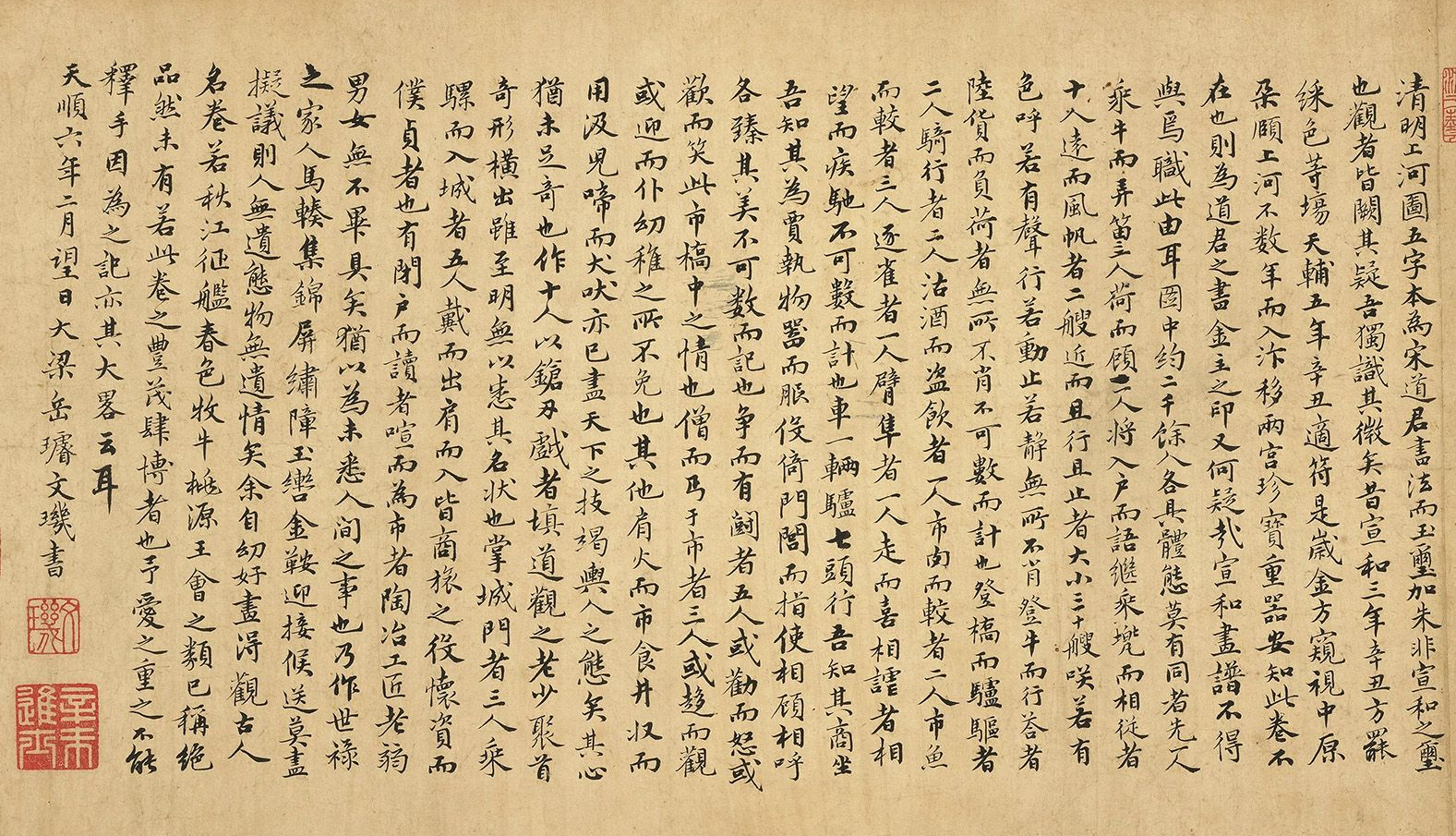聊起小楷,大家脑子里蹦出来的不是钟繇、王羲之,就是文徵明、王宠。但今天,咱不聊这些“流量巨星”,来说一位明代小楷界低调的实力派——岳璿。特别是他写在《清明上河图》后面的那段跋文,那可真叫一个“于无声处听惊雷”。你可能没听说过他的名字,但这手字,绝对能让你眼前一亮,心里一震:原来明代还有这么一位把小楷写到骨子里去的高手!