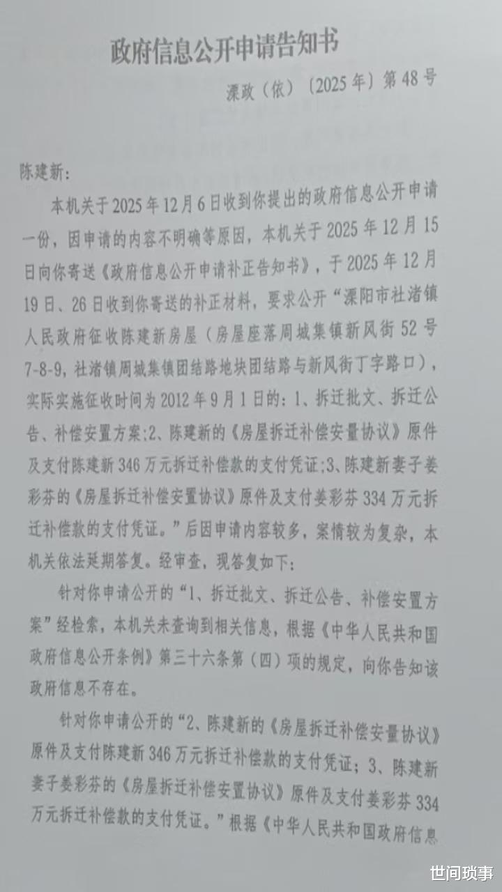 陈建新透露,在后续的应诉环节中,社渚镇相关部门提出的答辩观点与其掌握的原始协议内容存在显著差异,对方主张‘334万元补偿款加12万元生活补助’即等同于案涉346万元的协议款项,但陈建新方面指出,该12万元性质明确为独立的生活补助,不应纳入拆迁补偿总额进行抵扣,因此对方的计算方式可能与事实不符。此外,针对相关部门提到的‘协议倒签’情形,陈建新予以否认,不存在倒签情况。这些事实认定的差异,正是案件至今未能进入实体审理的关键所在。