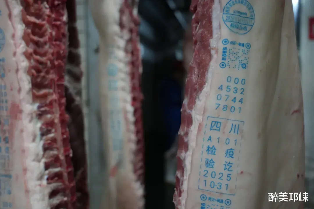 “两证两章”是保障肉产品安全的核心标识体系,也是消费者快速确认肉品合规性的依据。“看见它,就说明这是允许出厂上市的安全合格产品。”该工作人员指着两章中间的二维码介绍,“这就是成都‘肉证一码通’,不仅能扫码查看‘两证两章’,还能对猪肉进行全流程溯源。”
