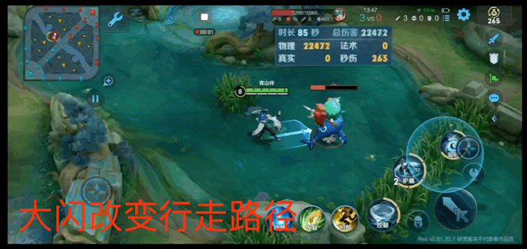 要注意的是,赵怀真释放三技能的时候,会像马可波罗释放大招一样朝着指定的方向移动,这一套打下来,能产生不小的距离。当然也可以通过移动轮盘改变行走路径。也可以通过闪现改变移动的位置。要注意,闪现时,人虽然出去了,大招的太极圈位置不会随着闪现改变那么快。但是二段的伤害可以通过技能轮盘调整方向