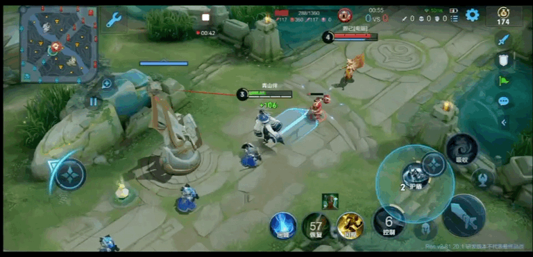 第二点,二技能触发的护盾,并不像其他英雄一样在身上产生真实的护盾,而是以身体为中心,建有一个圈,期间抵御一定的伤害,效果和廉颇二技能类似。血量上会显示出和猪八戒类似的效果,很短暂,这是关键