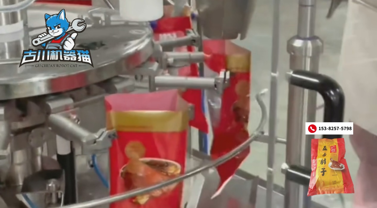 在实际生产中,古川五香肘子包装机的优势并不只体现在“快”上。给袋式结构对成品友好,肘子在入袋过程中不易被挤压变形,配合精准的定量系统,肉块与卤汁比例稳定,袋袋一致。对于做品牌熟食的企业来说,这种稳定性,往往比单纯追求极限速度更重要。