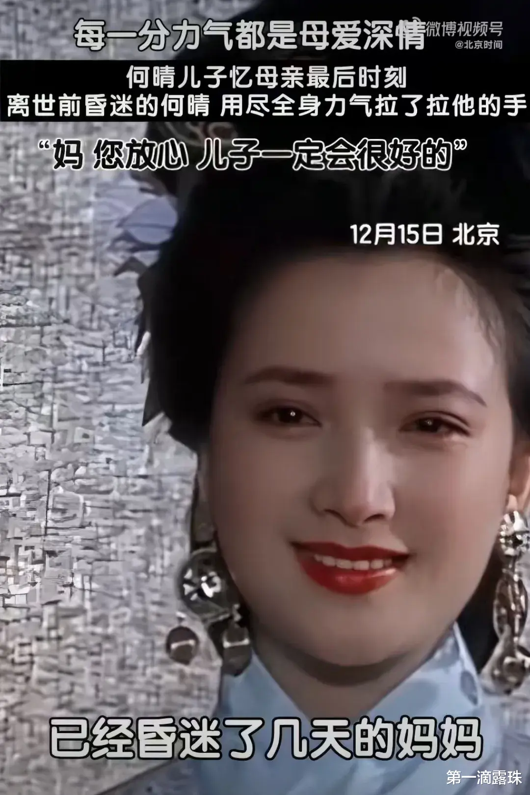 他红着眼眶,声音低沉地说起母亲最后的时刻:昏迷数日的何晴突然清醒,用尽全身力气拉了拉他的手,什么话都没说,却把所有牵挂都融进了这最后的拉手里。