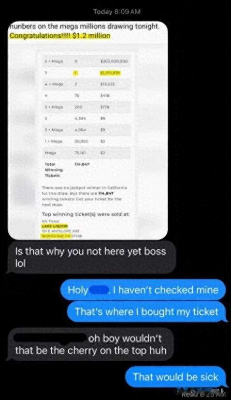 第二天清晨,当他正准备联系同事告知自己当天不上班时,同事的短信却先一步抵达。这条短信里,同事附上了超级百万的开奖结果截图,以半开玩笑的口吻询问他是不是因为中了百万大奖才旷工,还煞有其事地祝贺他。抱着好奇心态,Michael点开截图,仔细核对起自己购买的彩票号码。这一看,让他惊得瞪大了双眼,自己所买的六个号码中,竟有五个与开奖号码完全匹配,这意味着他赢得了高达1,214,818美元的奖金。