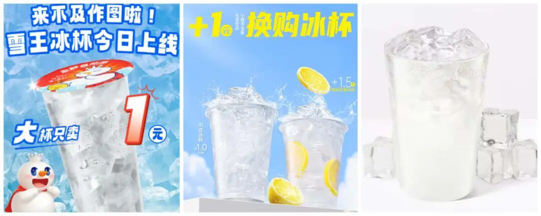 其中,蜜雪冰城、古茗和书亦烧仙草的方形冰不仅在茶饮产品里当配料,还曾经推出以方形冰为主料的冰杯或冰水。