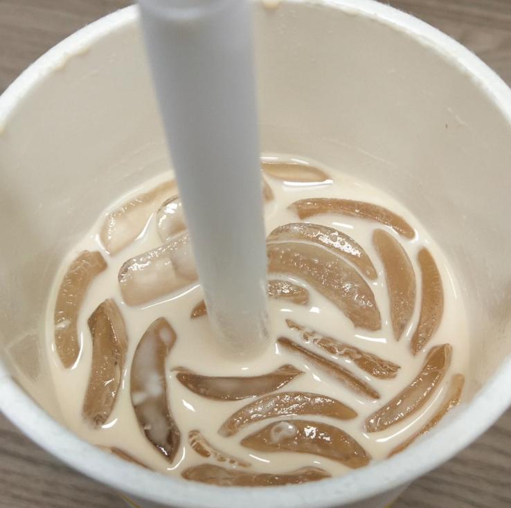 同时,月牙冰的月牙外廓可以顺着杯壁自然贴合,加之月牙冰体积相对较小,通常可以在杯中自由流动,也不会像普通方形冰那样容易堆成一团,让饮品流动更顺畅,吸管也能顺畅搅动。
