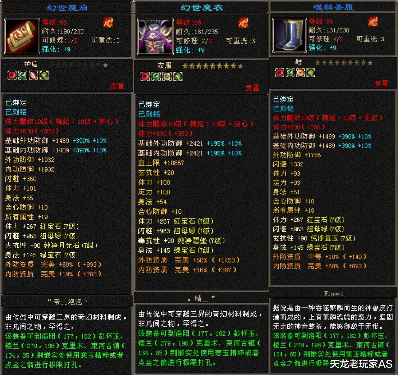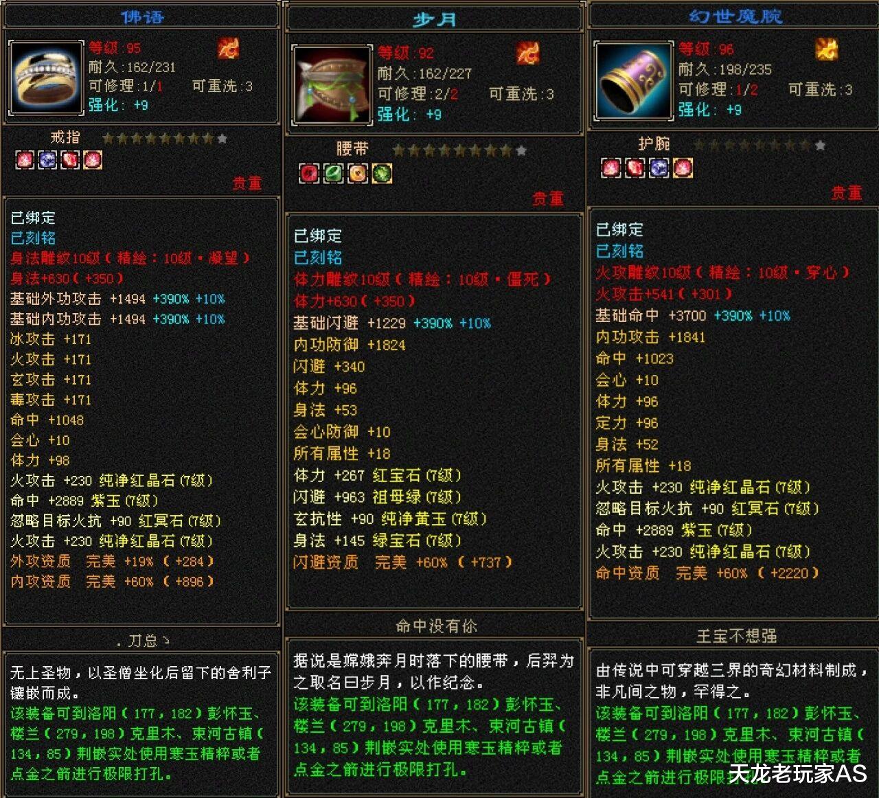 不是大哥钱不够,实在是大哥对装备的要求太高,目前已经换的装备件件精品: