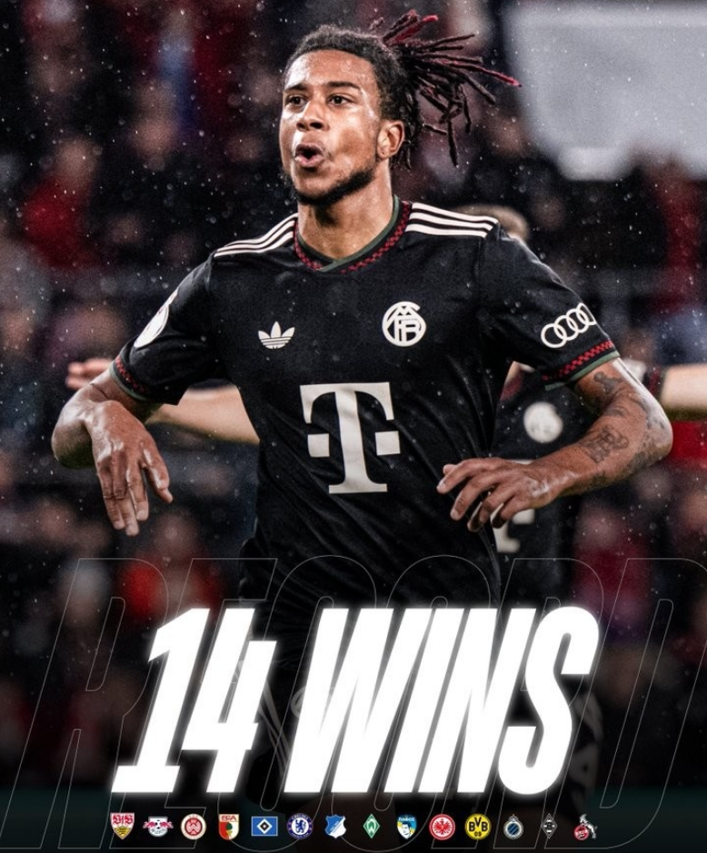 在今天凌晨结束的德国杯第二轮焦点战,拜仁慕尼黑4-1逆转科隆,豪取开局14连胜,正式超越AC米兰1992-1993赛季创下的开季13连胜纪录,独享欧洲五大联赛历史最佳开局荣誉!