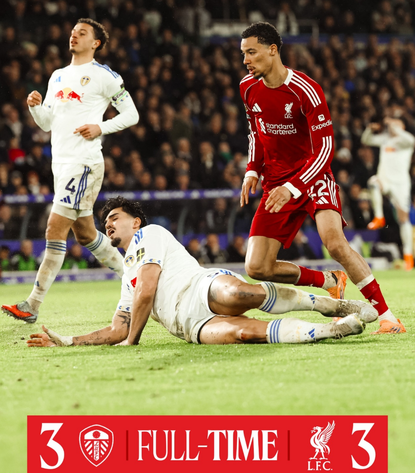 关键时刻,利物浦在第80分钟由索博斯洛伊破门,再次取得3-2领先。但补时第96分钟,田中碧的读秒绝平让利物浦到手的3分变为1分,最终比分定格在3-3。