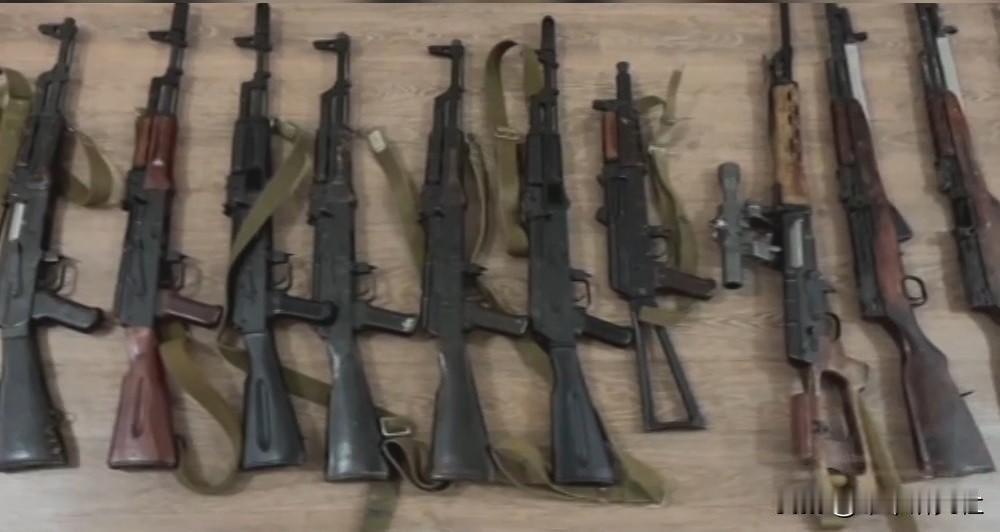 哈萨克斯坦安全部门在江布尔州缴获大量暴乱分子的枪械,包括AK-47、AK-74、