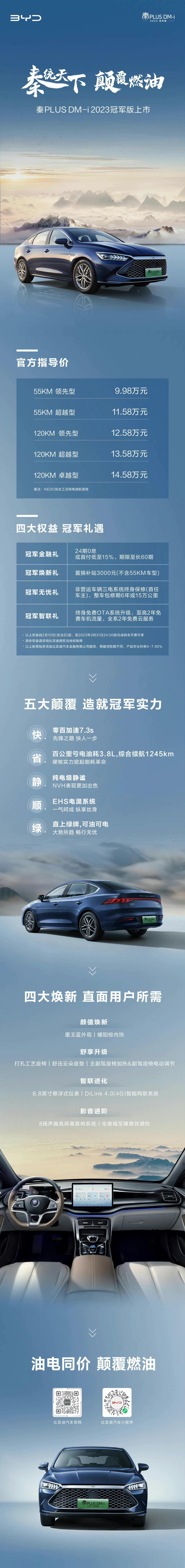 每天订单5000台!比亚迪秦PLUS DM-i 2023冠军版上市杀疯了