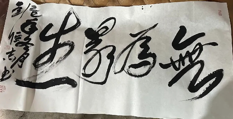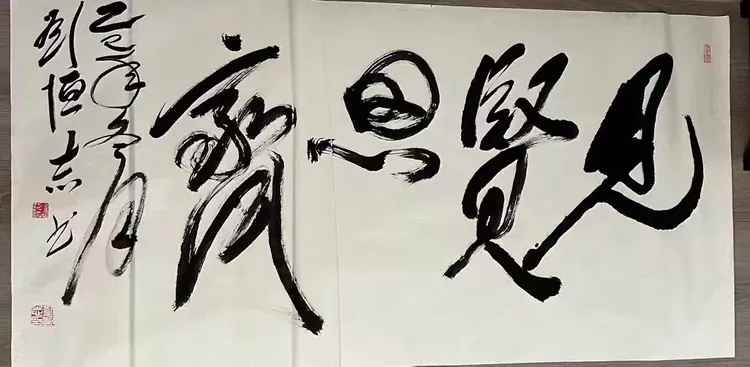 刘恒志以狂草挥就“见贤思齐”,笔墨的奔放洒脱与箴言的自省内核形成绝妙碰撞。狂草的线条肆意铺展,是艺术美感的极致表达;“见贤思齐”的文心沉潜其中,是文化内涵的深度传递,意境与内涵浑然相融,让书法不止于笔墨,更成了精神的载体。