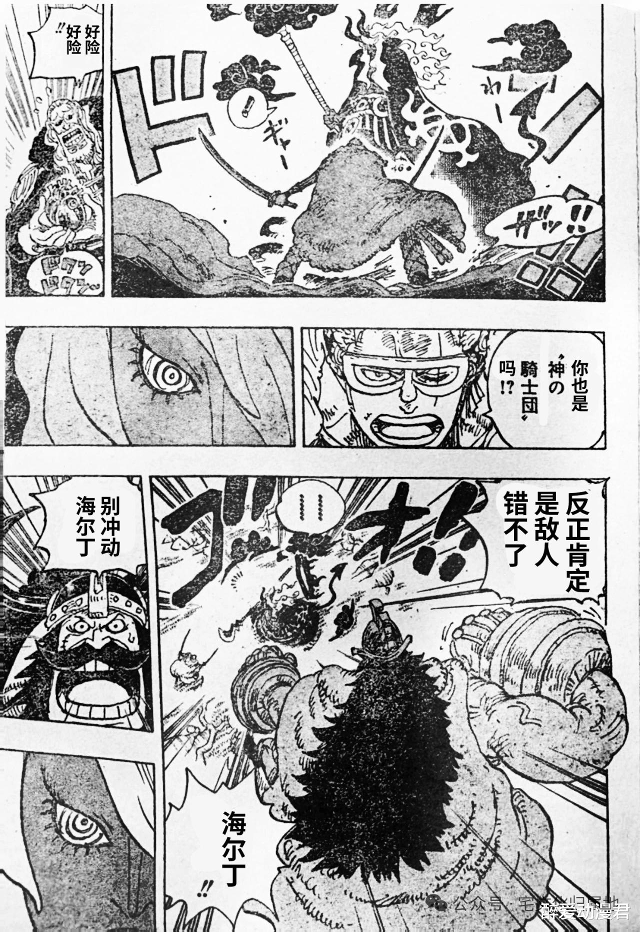 海尔丁和索隆都要出手,索隆还以为他也是神之骑士团的一员。海尔丁被斯坦森救了一下,但是斯坦森自己的一条腿被砍了!