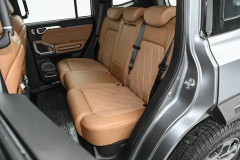 双电机布局:车型提供两种电机配置。入门版为前置双电机,总功率165kW,扭矩390N·m,性能表现已经相当充沛。而中高配车型采用前后三电机布局,总功率高达455kW,扭矩700N·m,使其0-100km/h加速时间仅需4.9秒,为这款“方盒子”带来了媲美性能车的动力体验。