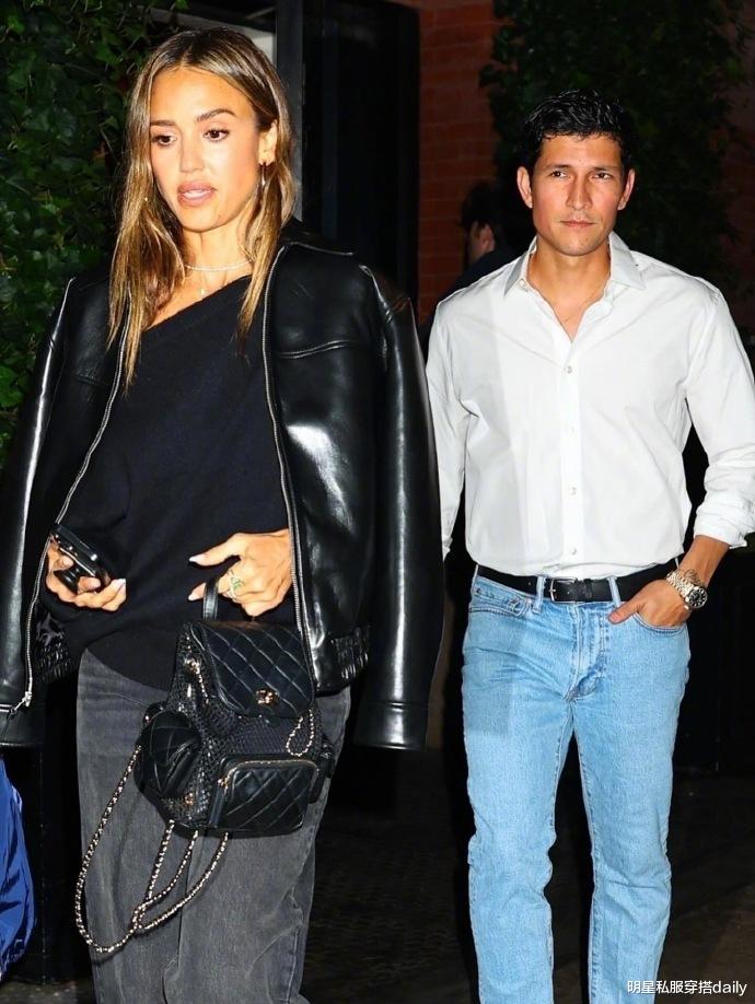 在纽约苏豪区为丹尼・拉米雷斯庆祝 33 岁生日的约会中,杰西卡・阿尔芭的造型将 “优雅大方” 与 “酷飒感” 完美融合。