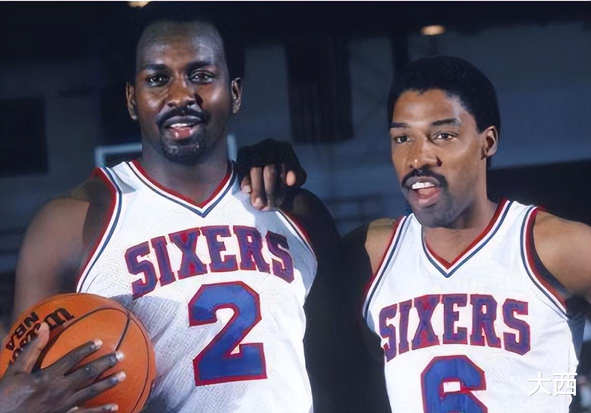 后来为了追求总冠军,马龙选择加盟76人队,联手另一位超巨J博士。合作第一年,马龙又轰下了场均24.5分15.3篮板2盖帽的华丽数据,再一次当选为MVP。他也成为史上,第一位换队前后都拿下MVP的超巨。不仅如此,当年J博士和马龙联手爆发,也夺得了当年的总冠军,并且马龙斩获FMVP,是真正意义上的超级巨星。