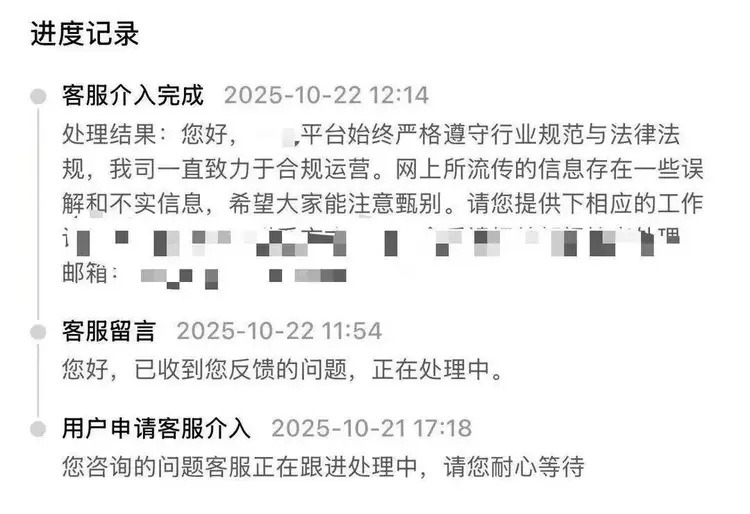 10月21日,为了解福袋活动机制等问题,扬子晚报/紫牛新闻记者通过该潮玩APP内反馈通道提交了有关诉求。10月22日,客服人员回应称,平台始终严格遵守行业规范与法律法规,一直致力于合规运营,网上所流传的信息存在一些误解和不实信息,希望大家能注意甄别。随后,记者向该潮玩平台发送了相关邮件,截至发稿前,暂未获得回应。