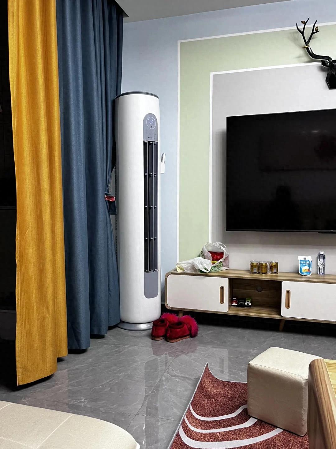 从“体型”看,圆柱柜机的直径35-45cm,视觉上圆滚滚的,放角落像个艺术品。