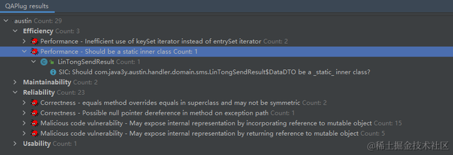 Alibaba Java Coding Guidelines集成了阿里巴巴的代码规范和最佳实践,帮助开发者保持代码质量和一致性,austin项目也一直用这个插件做代码的扫描。