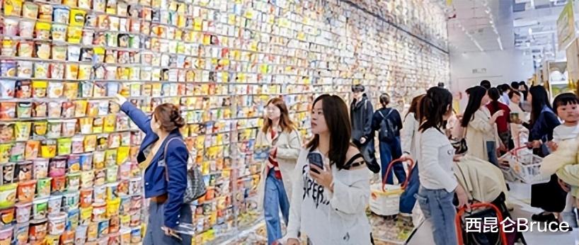 这意味着,即使买不到零食,大家仍然可以去看那面棒棒糖周杰伦墙、打卡“泡面之城”、和60多个零食品牌的人偶互动,甚至还能玩几局巨型麻将。