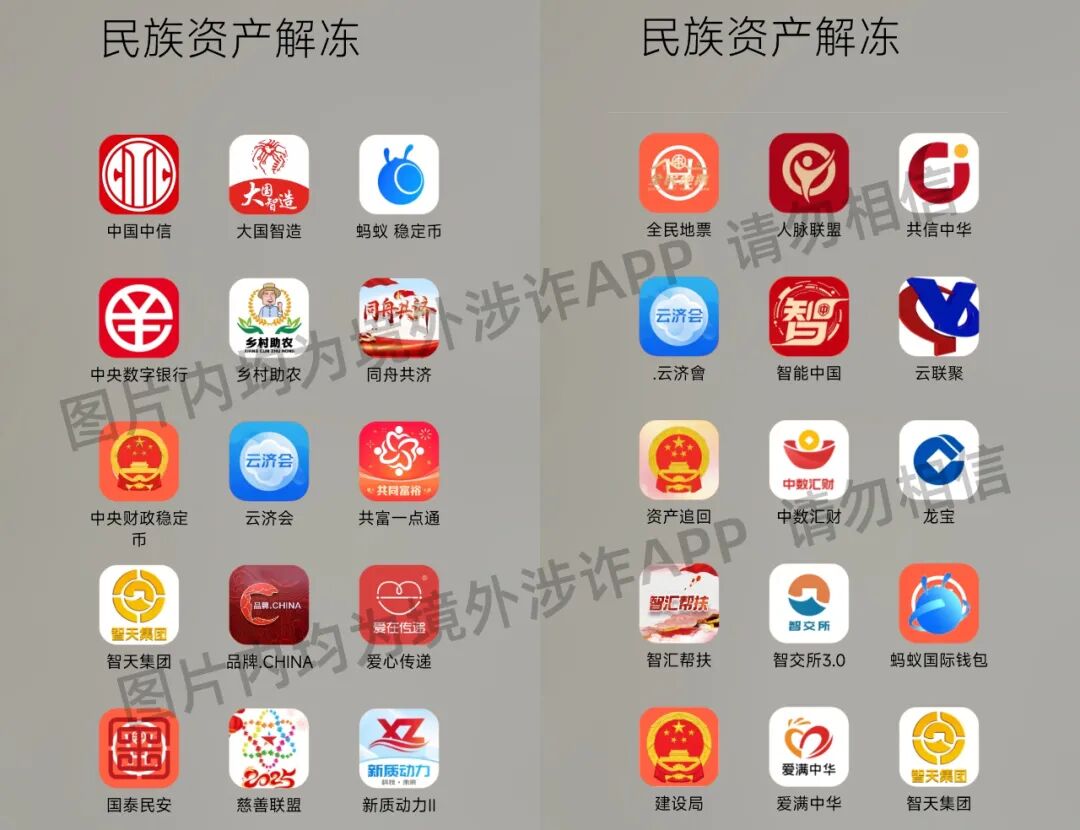 除此之外,今年比较活跃的还有假冒的“国能”涉诈APP,假冒的“中国政企”涉诈APP,假冒的“慈联”涉诈APP,假冒的“人民资产”涉诈APP、假冒的“中国三农”涉诈APP 、假冒的“中国圆梦”涉诈APP等,只要还有一个人相信,骗子就会不断换着马甲引你上钩。